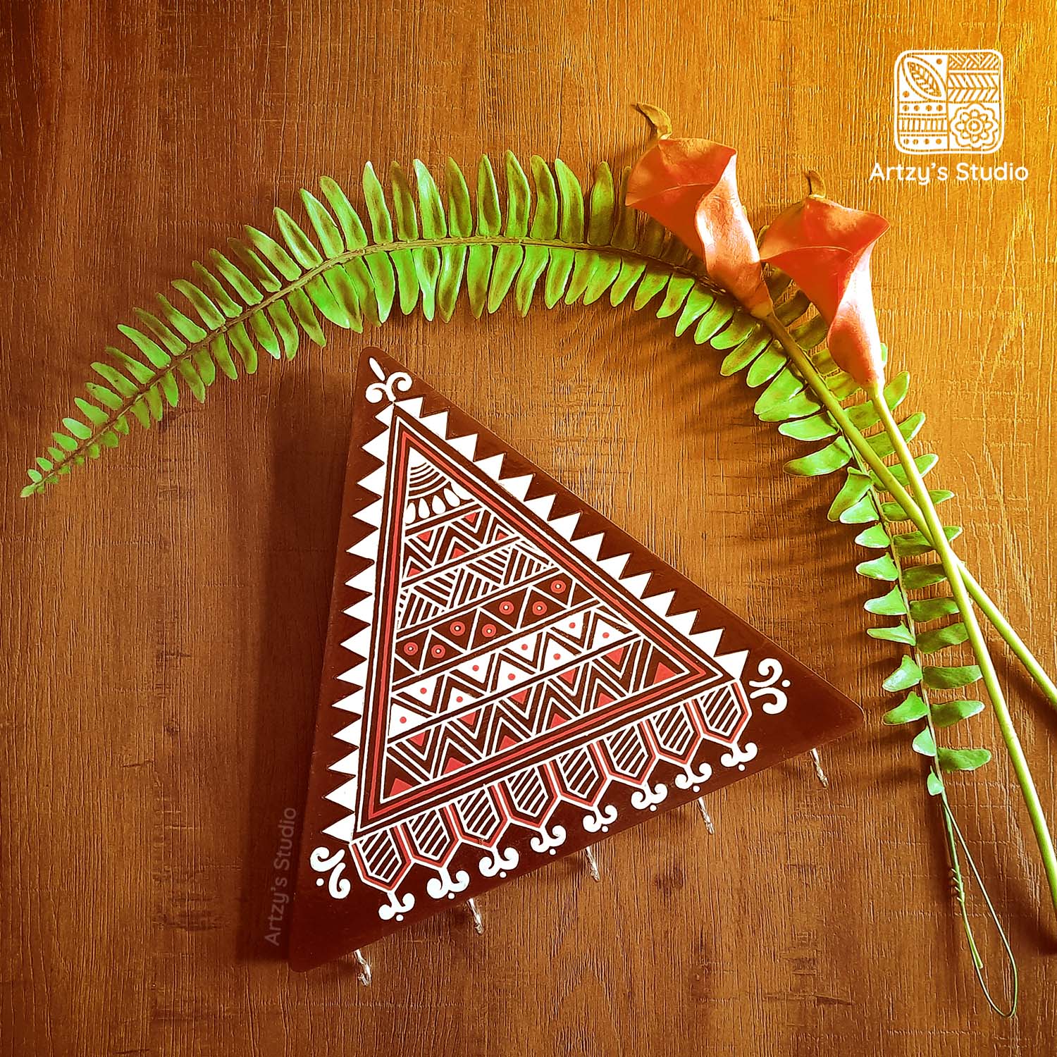This Brown Triangle Key Holder is a functional and stylish addition to any entryway or hallway. The triangular design allows for easy organization and the 5 hooks provide ample space for all your keys. Made with sturdy materials, this key holder is a durable and long-lasting solution.