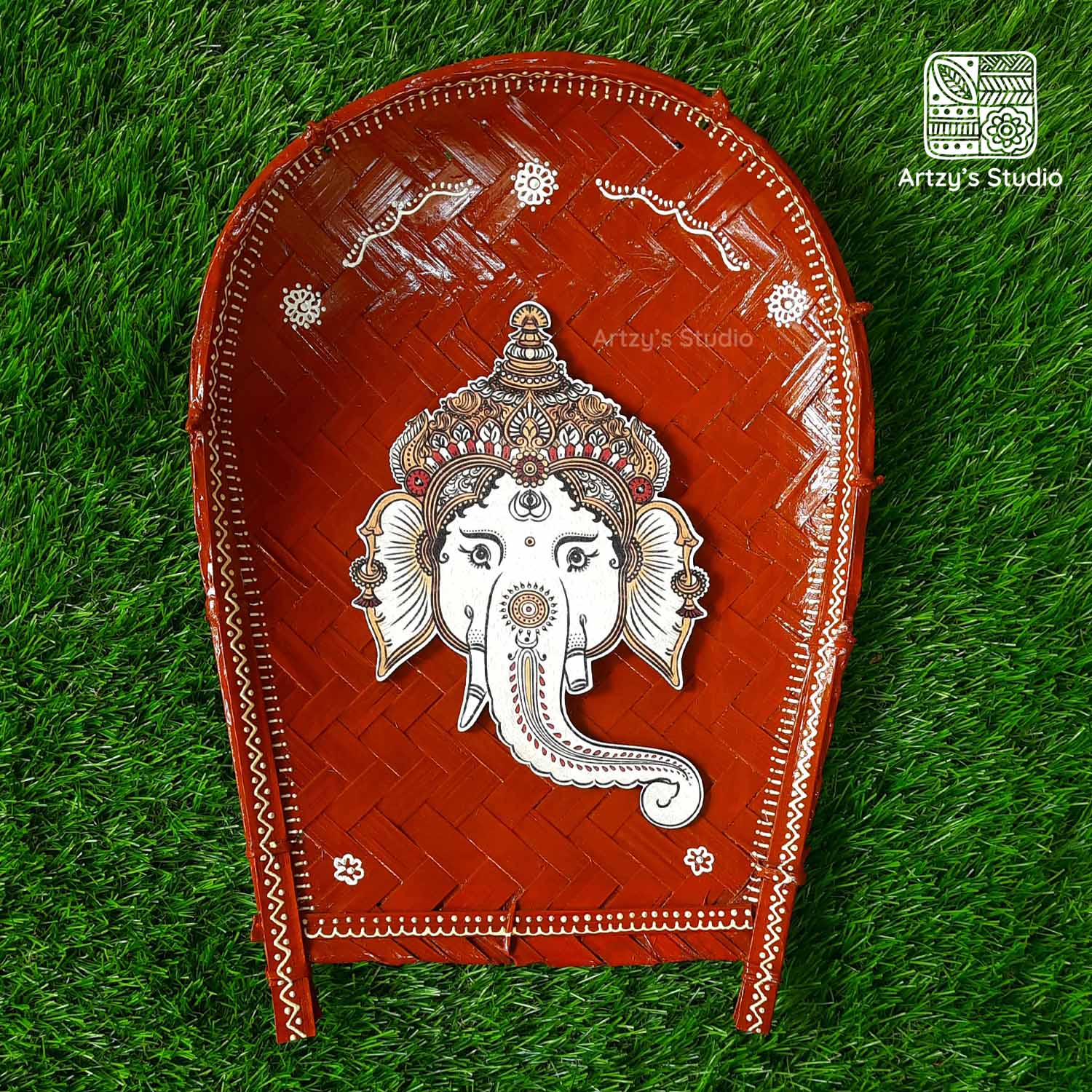 Decorated Large Sup with Large Face Ganpati and Brown BG