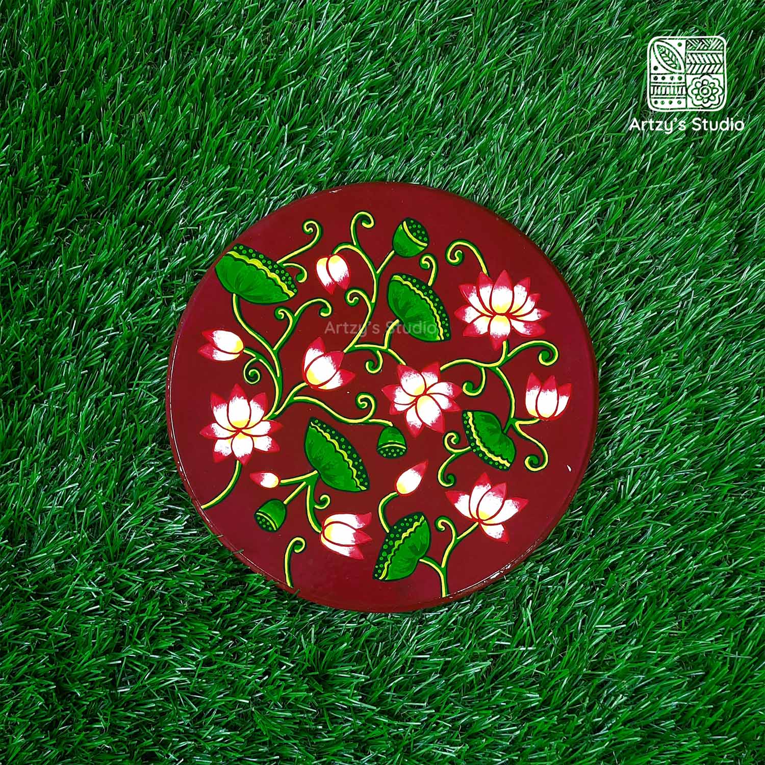 This Lotus Design Round Art Plate is expertly crafted with a beautiful lotus design, perfect for adding an elegant touch to any room. Made with high-quality materials, this plate is both durable and aesthetically appealing. Bring a sense of sophistication to your decor with this stunning piece.